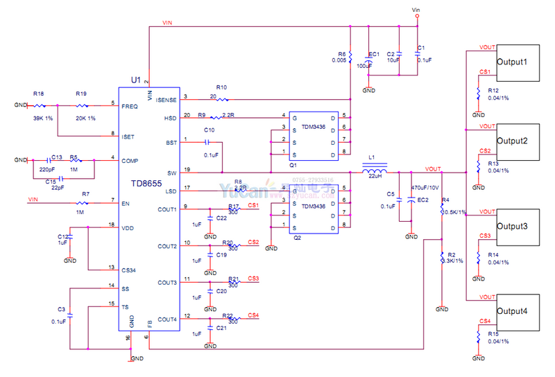 TD8655 40V/10A外置MOS 1/2/4路輸出限流同步降壓芯片