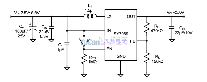 SY7069是一種高效率同步升壓轉(zhuǎn)換器,適用于單節(jié)鋰離子或鋰聚合物電池供電應(yīng)用。它可以轉(zhuǎn)換為2.5V輸入電壓為5.5V輸出電壓。主開關(guān)采用NMOS結(jié)構(gòu),同步開關(guān)采用PMOS結(jié)構(gòu)。SY7069可以在關(guān)機模式下斷開輸出和輸入。當(dāng)輸入電壓超過規(guī)定的輸出電壓時SY7069自動進入旁路模式。