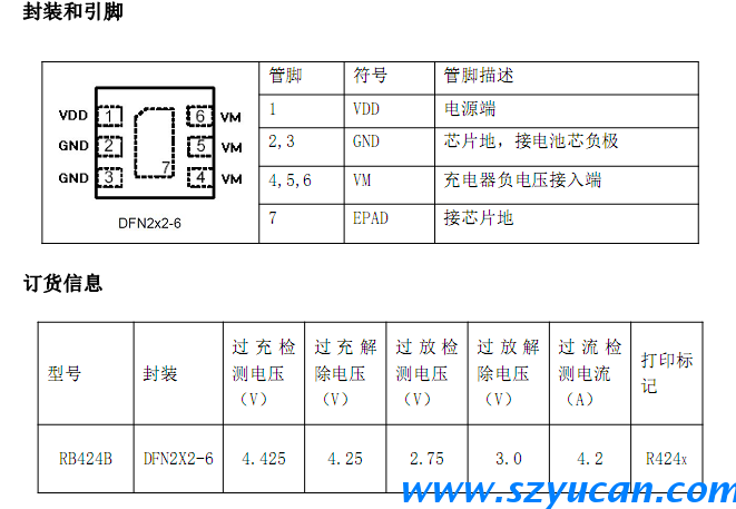 路等各項保護等功能,確保電芯安全,高效的工作。RB424B采用 DFN2X2-6封裝,外圍只需要一
